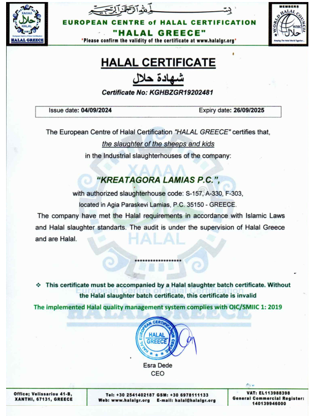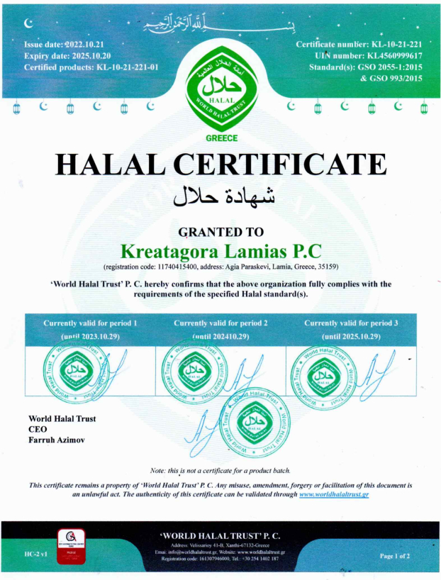 Also, our company has a HALAL accreditation to meet the exclusive needs of our clientele both in Greece and abroad.